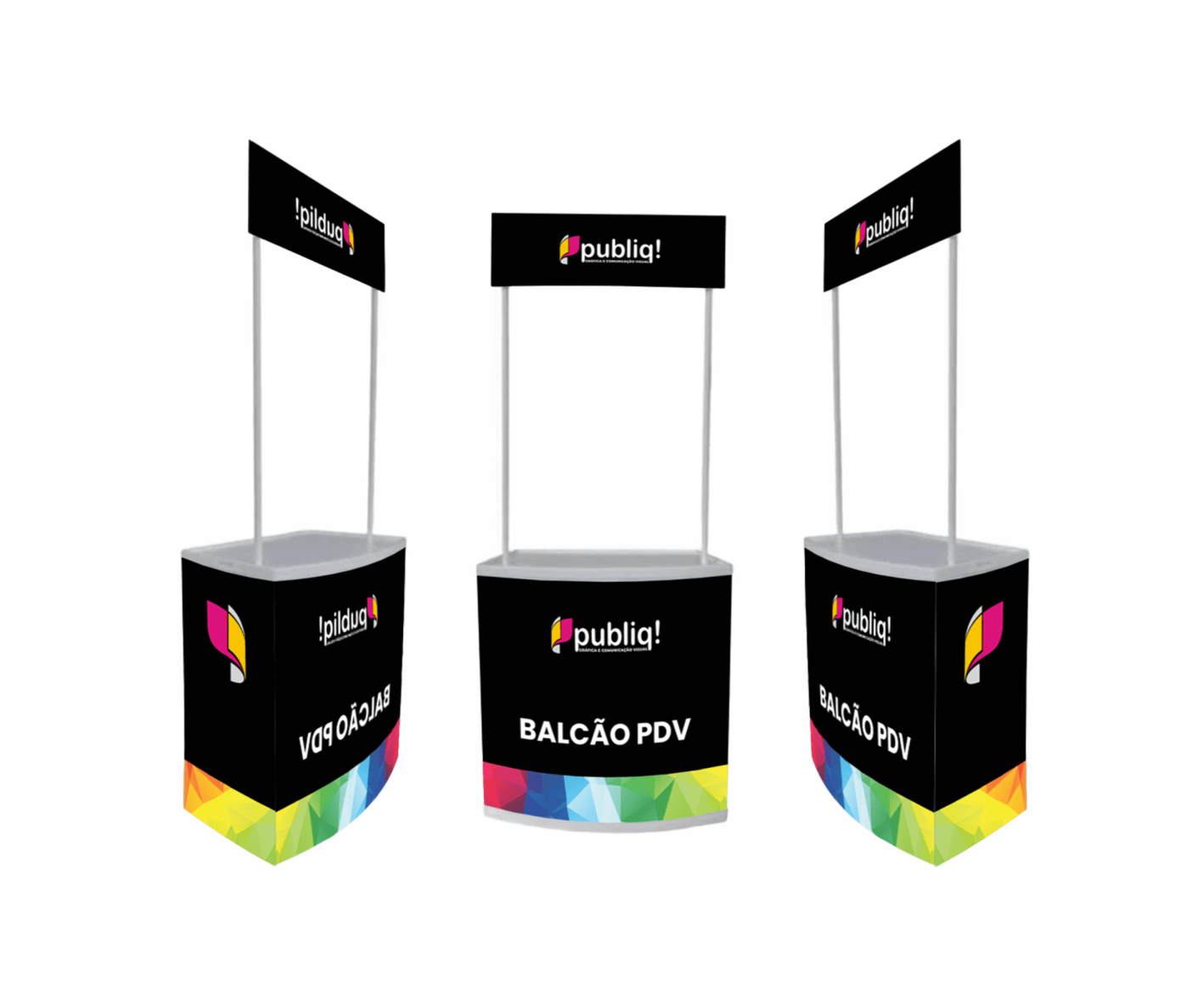 O balcão PDV (ponto de venda) é uma solução prática e eficiente para exposição de produtos em feiras, eventos, ações promocionais e lojas. Fabricado em PS adesivado, esse tipo de balcão é leve, resistente e de fácil montagem, ideal para quem busca praticidade sem abrir mão da personalização e impacto visual.